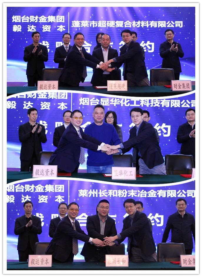 12月30日下午,新舊動(dòng)能轉(zhuǎn)換毅達(dá)基金在東方海天酒店舉行投資項(xiàng)目集中簽約儀式,先后與煙臺(tái)顯華化工科技有限公司、萊州長(zhǎng)和粉末冶金有限公司、蓬萊市超硬復(fù)合材料有限公司三家企業(yè)簽訂股權(quán)投資戰(zhàn)略合作協(xié)議。市發(fā)改委、財(cái)政局、金融監(jiān)管局、科技局相關(guān)領(lǐng)導(dǎo)受邀出席,與煙臺(tái)財(cái)金集團(tuán)董事長(zhǎng)劉海彬、毅達(dá)資本創(chuàng)始合伙人樊利平等投資方領(lǐng)導(dǎo)、簽約企業(yè)代表共同見證簽約。