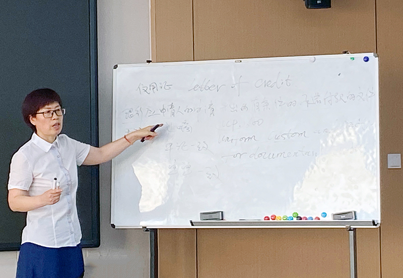 隨后,主講人對融資市場及主要融資品種進(jìn)行講解,詳細(xì)區(qū)分解析了公司債券、企業(yè)債券、債務(wù)融資工具,并著重以集團(tuán)投資企業(yè)——煙臺新能智慧產(chǎn)業(yè)園為例,講解了國際貿(mào)易結(jié)算工具信用證的使用和融資實(shí)務(wù),為便于理解,她在現(xiàn)場繪制了信用證業(yè)務(wù)流程圖。講授中,主講人不斷拋出問題,設(shè)置了有獎(jiǎng)問答環(huán)節(jié),大家一直緊緊跟隨著她的節(jié)奏,認(rèn)真聆聽,主動思考,深入探討交流。
