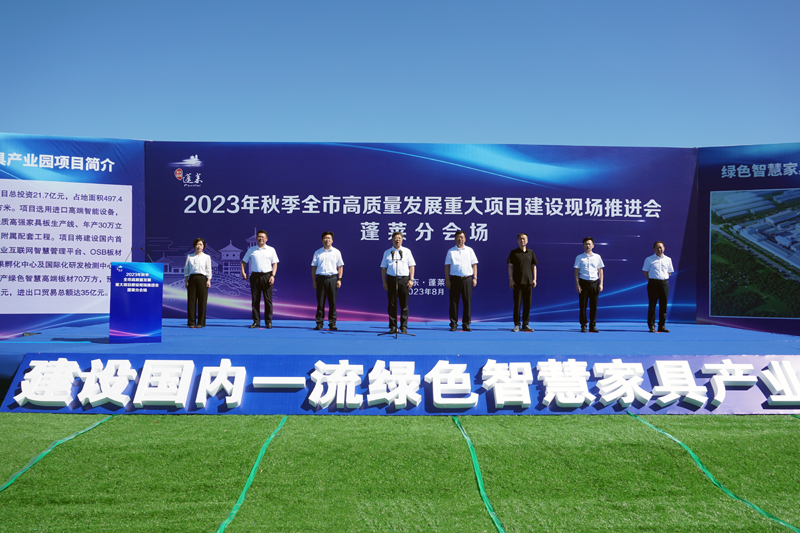 現(xiàn)場(chǎng),區(qū)長(zhǎng)王長(zhǎng)港介紹了2023年蓬萊區(qū)重點(diǎn)項(xiàng)目投建計(jì)劃,同時(shí),充分肯定了智慧綠色家具板材項(xiàng)目在爭(zhēng)取政策支持、推進(jìn)征遷進(jìn)度、保障資金運(yùn)用等前期工作中取得的成效。他強(qiáng)調(diào),堅(jiān)持抓項(xiàng)目就是穩(wěn)增長(zhǎng)、促轉(zhuǎn)型、謀發(fā)展,全區(qū)上下要圍繞項(xiàng)目落地、開工、生產(chǎn)、達(dá)產(chǎn)“四維度”,狠抓項(xiàng)目開工率、投資完成率、竣工投產(chǎn)率,以更大力度、更優(yōu)服務(wù)、更實(shí)舉措推動(dòng)重大產(chǎn)業(yè)項(xiàng)目建設(shè)提速增效,為高質(zhì)量發(fā)展蓄勢(shì)賦能。隨后,蓬萊經(jīng)濟(jì)開發(fā)區(qū)黨工委書記隋修妍就做好服務(wù)保障,加快推進(jìn)區(qū)內(nèi)項(xiàng)目建設(shè)作表態(tài)發(fā)言。